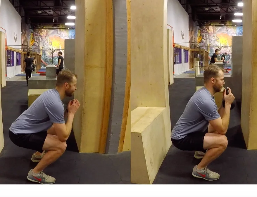 Clearly there is a big difference in mobility and stability from the left to the right. The positioning of the ankle, knee, hip , and torso on the right hand side is a far better position than the left. Its important to note the key to obtaining this new position came from using a weight as a constraint. If the individual were to utilize a forward trunk lean as on the left with a weight, there would be a failure in the movement pattern and the individual would fall over. In this way the resistance acts as assistance to obtain the desired range of motion.
